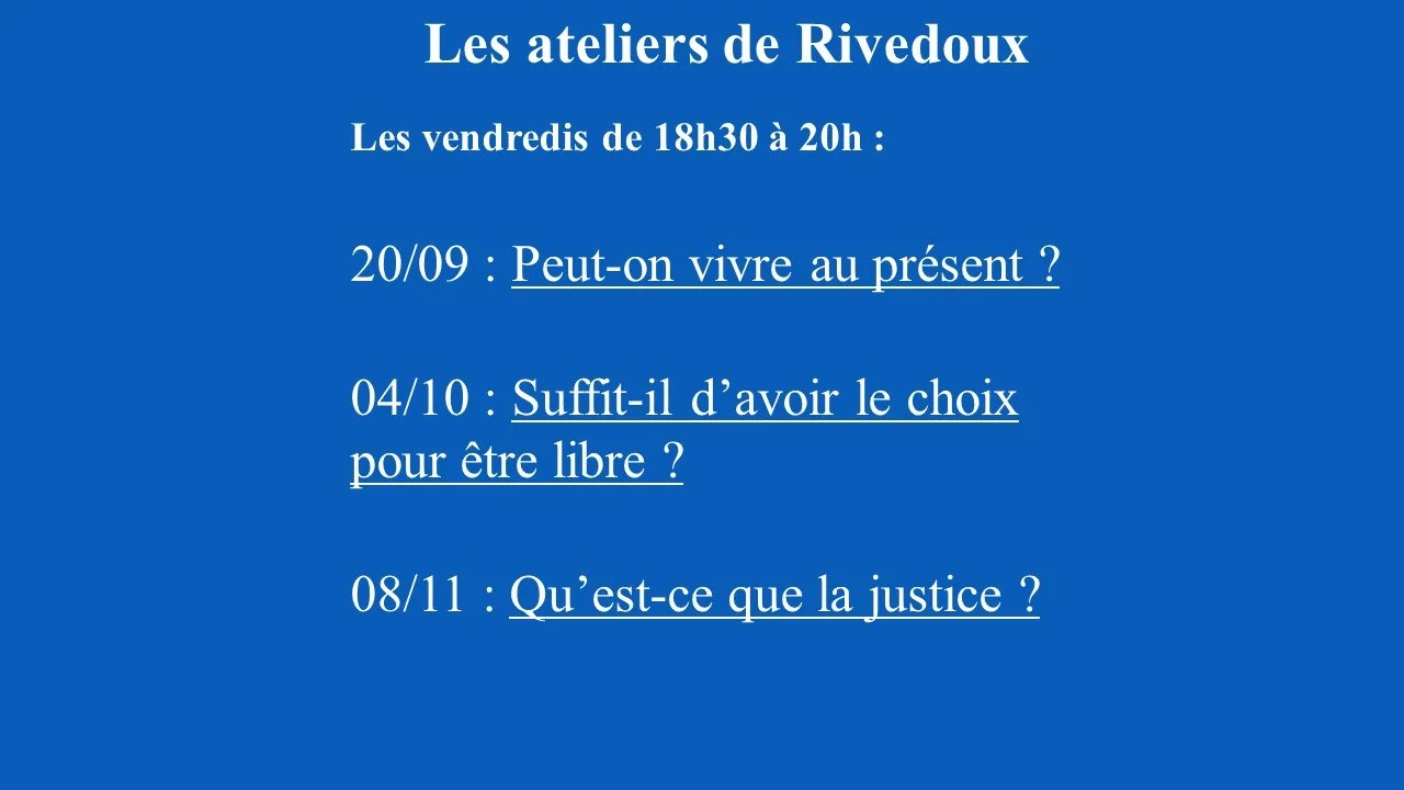 Voici les prochains ateliers philo à la bibliothèque de Rivedoux-Plage, les vendredis de 18h30 à 20h :
